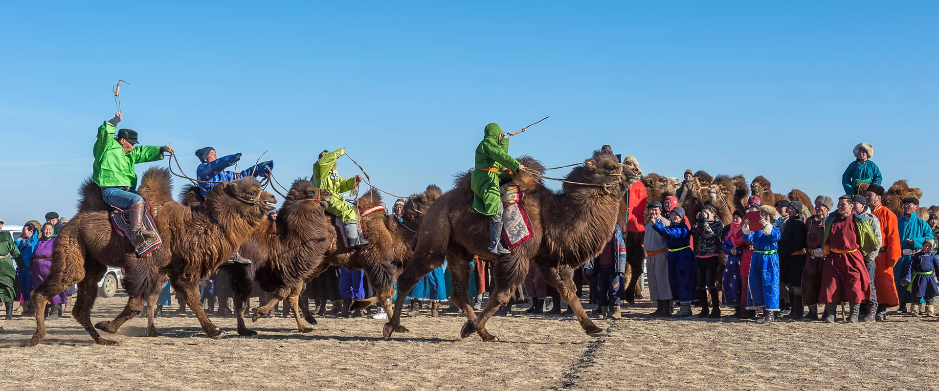 One of the biggest events in Mongolia is a Camel Festival. The Camel Festival is an annual event and we have been organizing it since 1997. Its goal is to create sustainable tourism, help the local community to increase the population and protect the Bactrian camels. The camel is a large even-toed ungulate native to the steppes of eastern Asia. The Bactrian camel has two humps on its back, in contrast to the dromedary camel which has one and is rugged cold-climate camels. Bactrain Camels have two coats, the warm inner coat of down and a rough outer coat which is long and hairy. Mongolians domesticated camels 50000 years ago. We use camel wool to make clothes and it is very warm. There was the largest camel race in the world in 2016 in Gobi. 1108 jockeys take to their saddles for a history-making race. The race was just 15 kilometers long with fastest camel finishing in 35 minutes 12 seconds. The race was organized with purpose of increasing the population and usage of domestic camels in Mongolia. It was registered Guiness record as the largest camel race ever. This tour gives you a great opportunity to explore the beautiful Gobi and enjoy the camel festival.